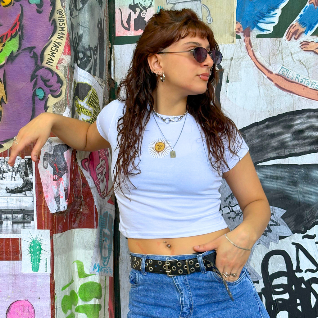 Cada modelo (top, baby tee o remera) está diseñado para acompañar tu cuerpo, no para pelearse con él.